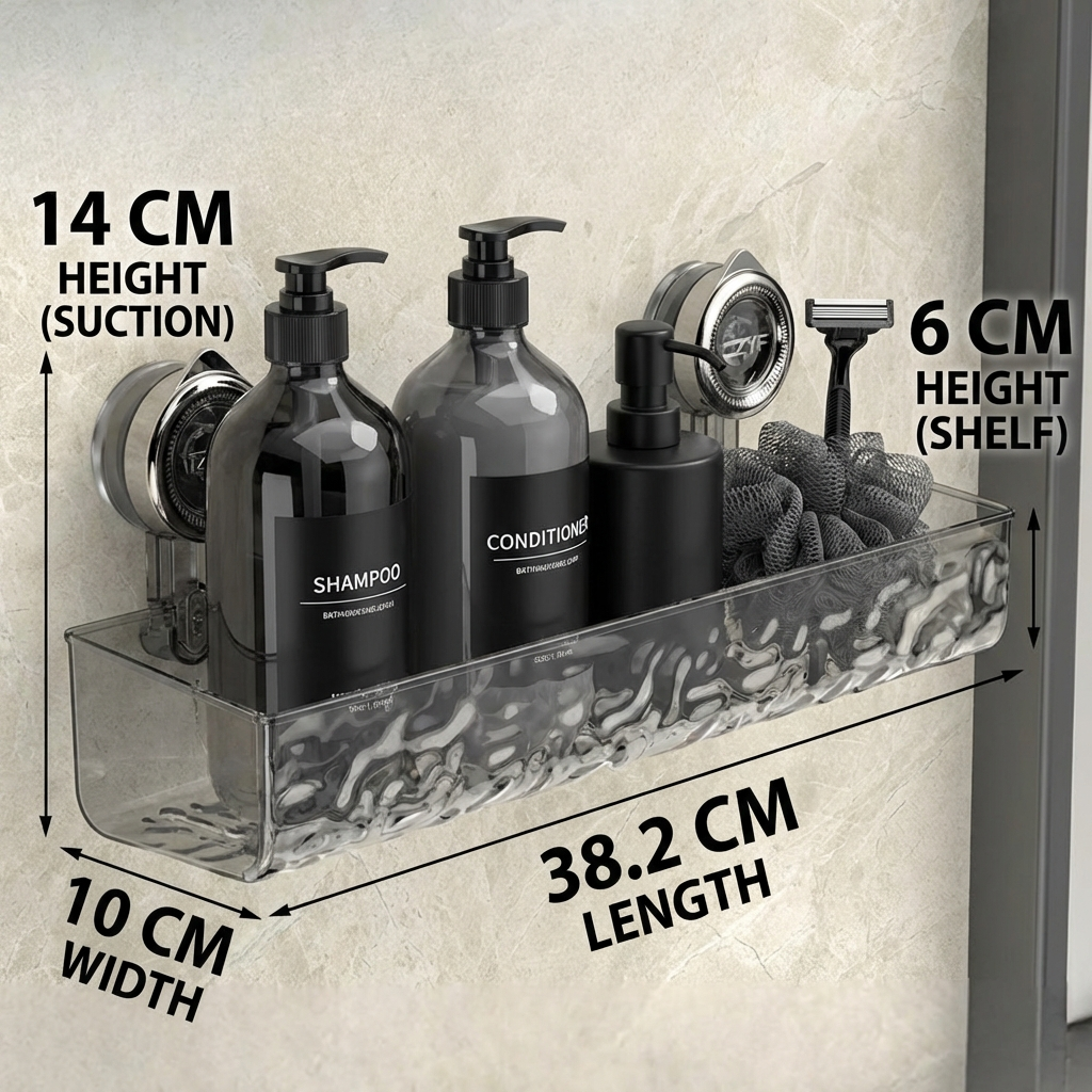- 🛁 Einfache Installation : Dank der starken Saugnäpfe bleibt das Regal sicher an Ort und Stelle, ganz ohne Bohren oder Schrauben.