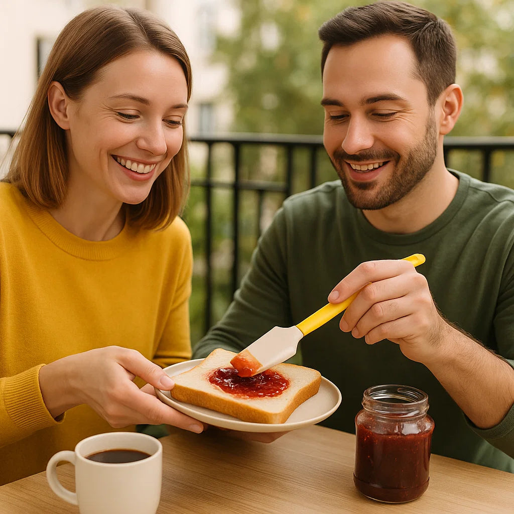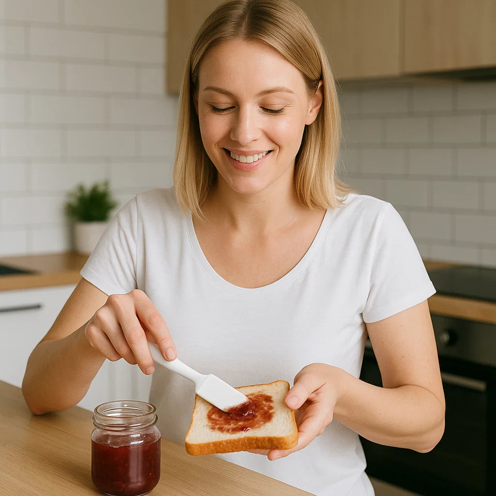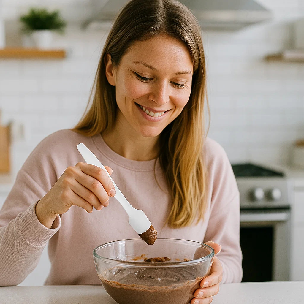 "Der Mini Spatel aus Silikon ist überraschend praktisch und kommt bei mir inzwischen täglich zum Einsatz. Besonders gefällt mir, dass ich damit selbst schmale Gläser komplett auskratzen kann und nichts mehr verschwendet wird."